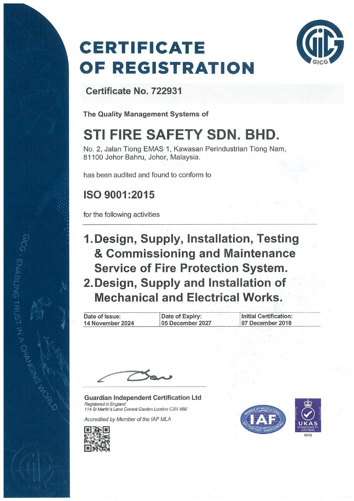 STI FIRE SAFETY SDN. BHD. were formed in year 1997 when Mr. Ian Choong (founder) became involved in a more managerial position. With his management and analytical skills, he set his sight in widening the line of work